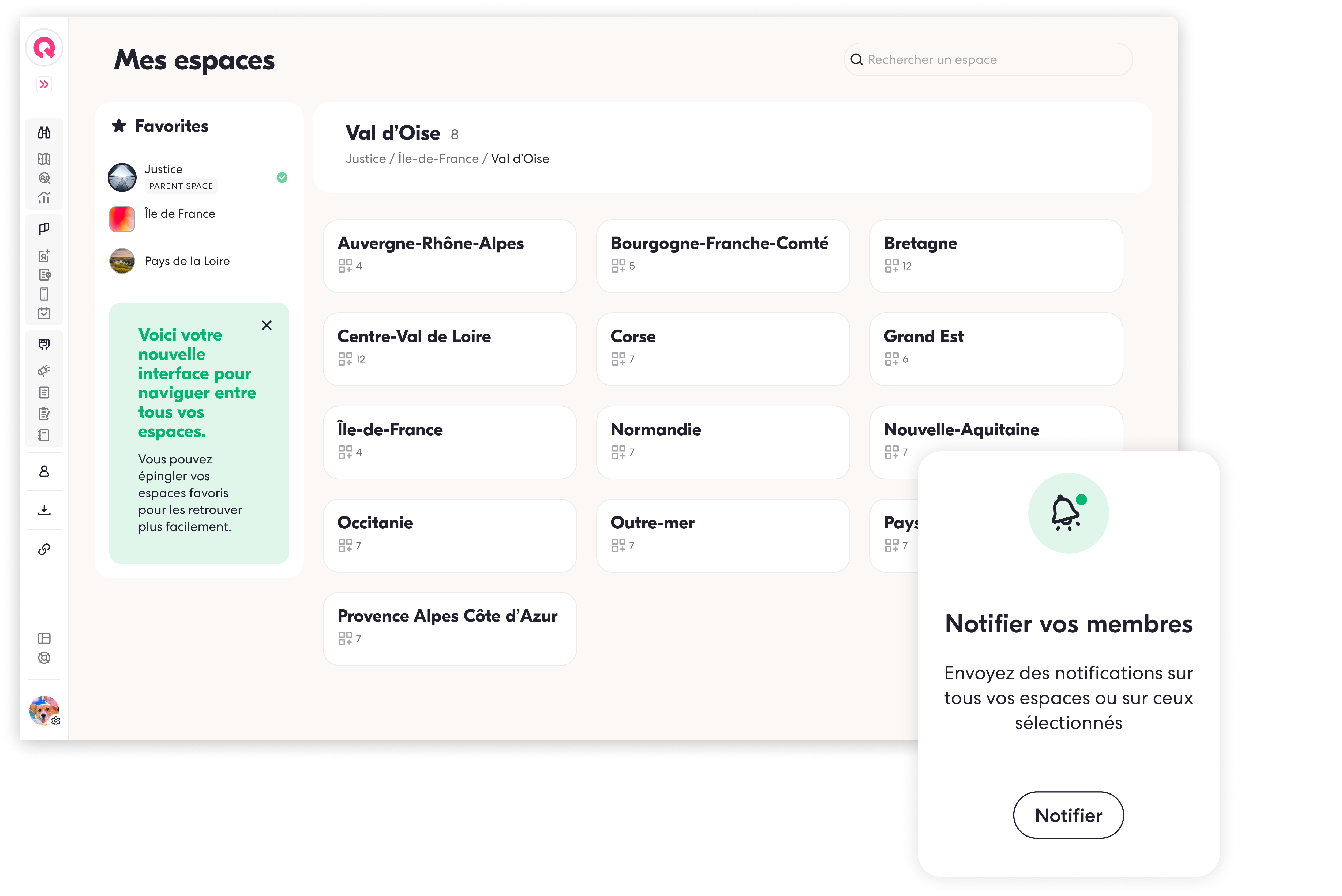 Reflétez la structure de votre mouvement avec des espaces locaux et centraux. Créez des actions, des formulaires, lancez des pétitions et partagez du matériel depuis un espace central ou local.